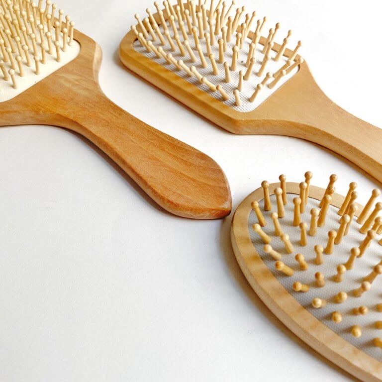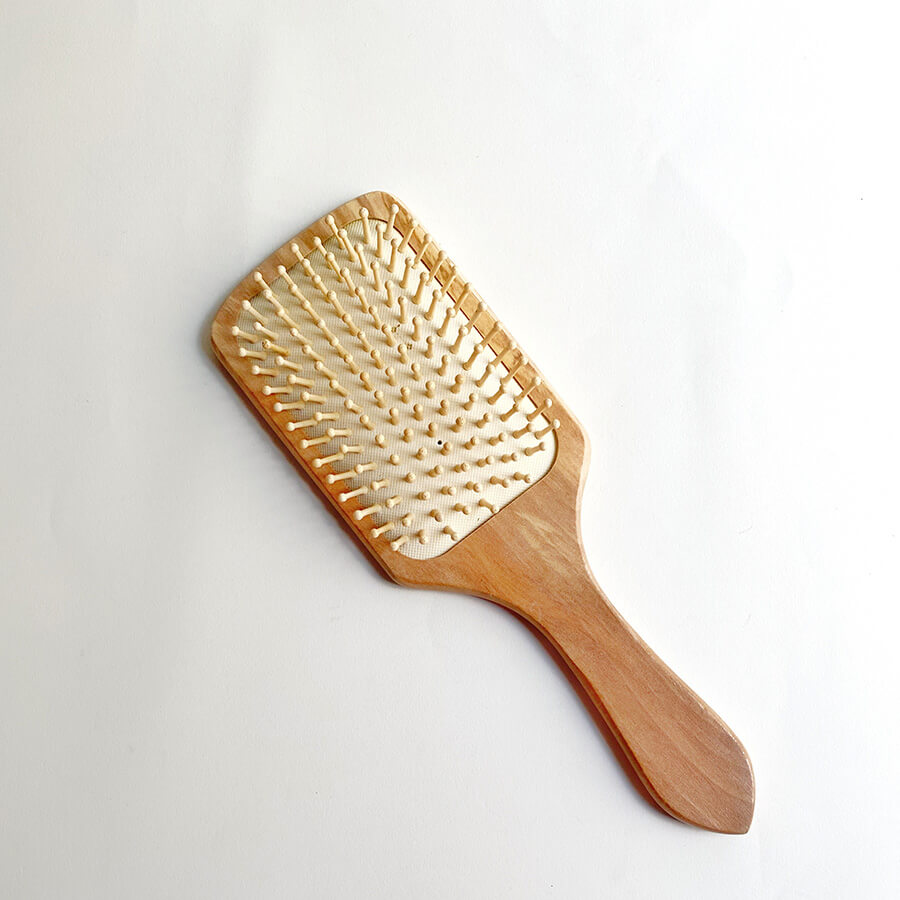 A light weight wooden brush with bamboo bristles. Light on your scalp and minimizes hair damage.
