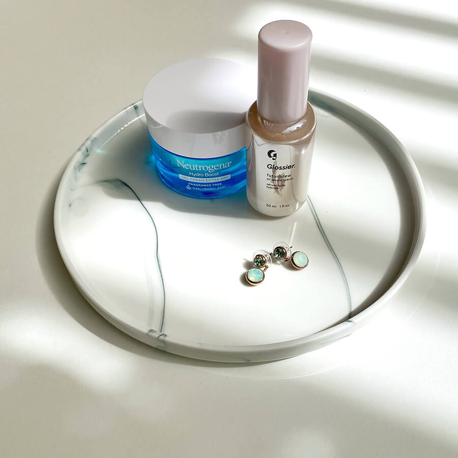 This vanity tray can help you neatly organize and easy access your lotion bottles, cosmetics, toiletries and other vanity essentials, keeping your space clean and helps you manage your space better. This is made of ceramic and it is sturdy, durable and easy to clean. Just wipe with a clean damp cloth.